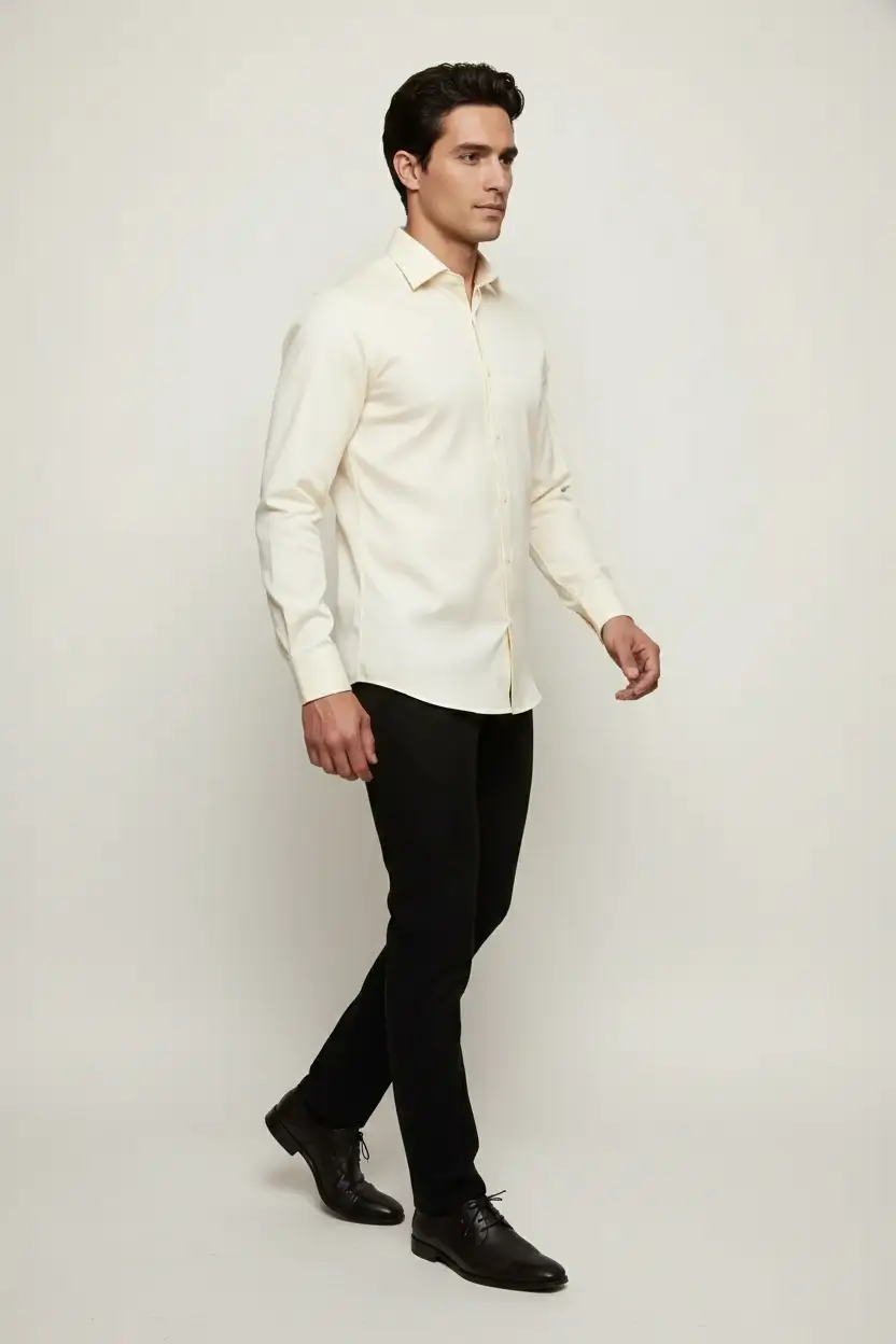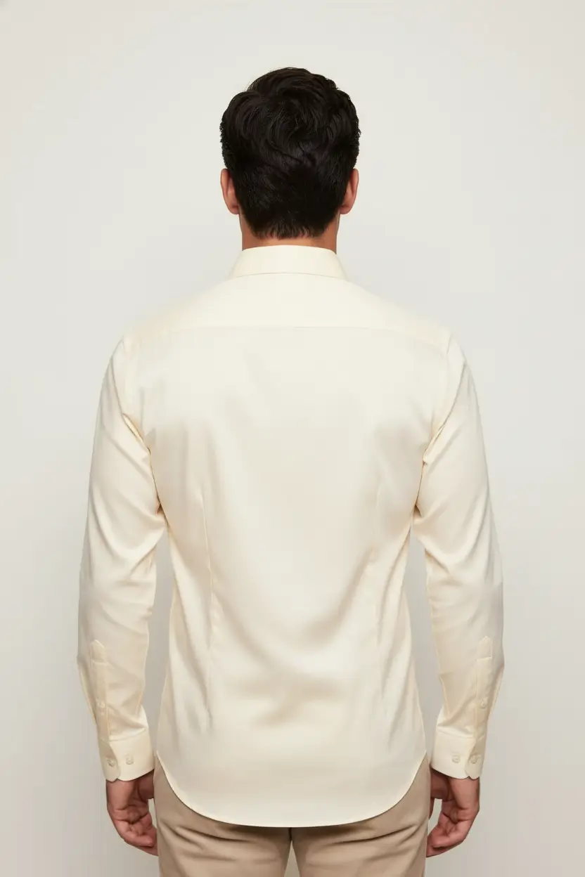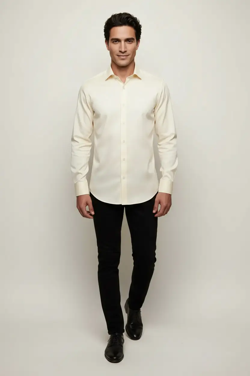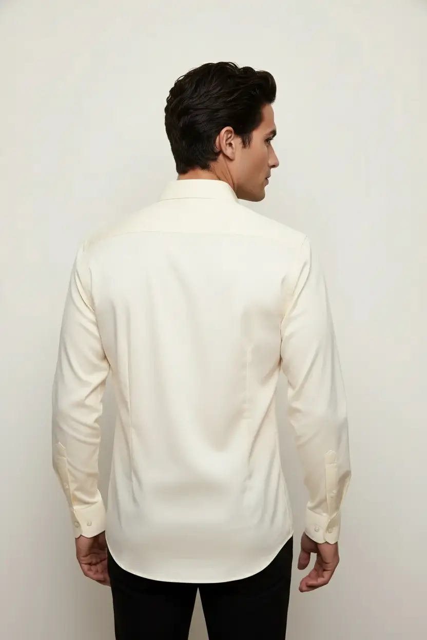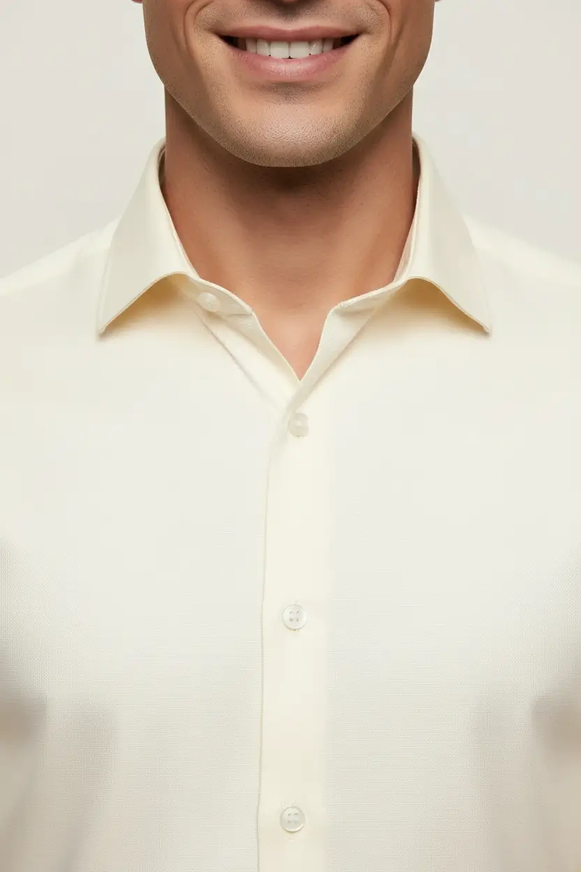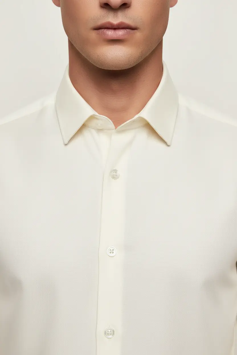 A clean ecru dress shirt offering a polished look for formal or semi-formal events.