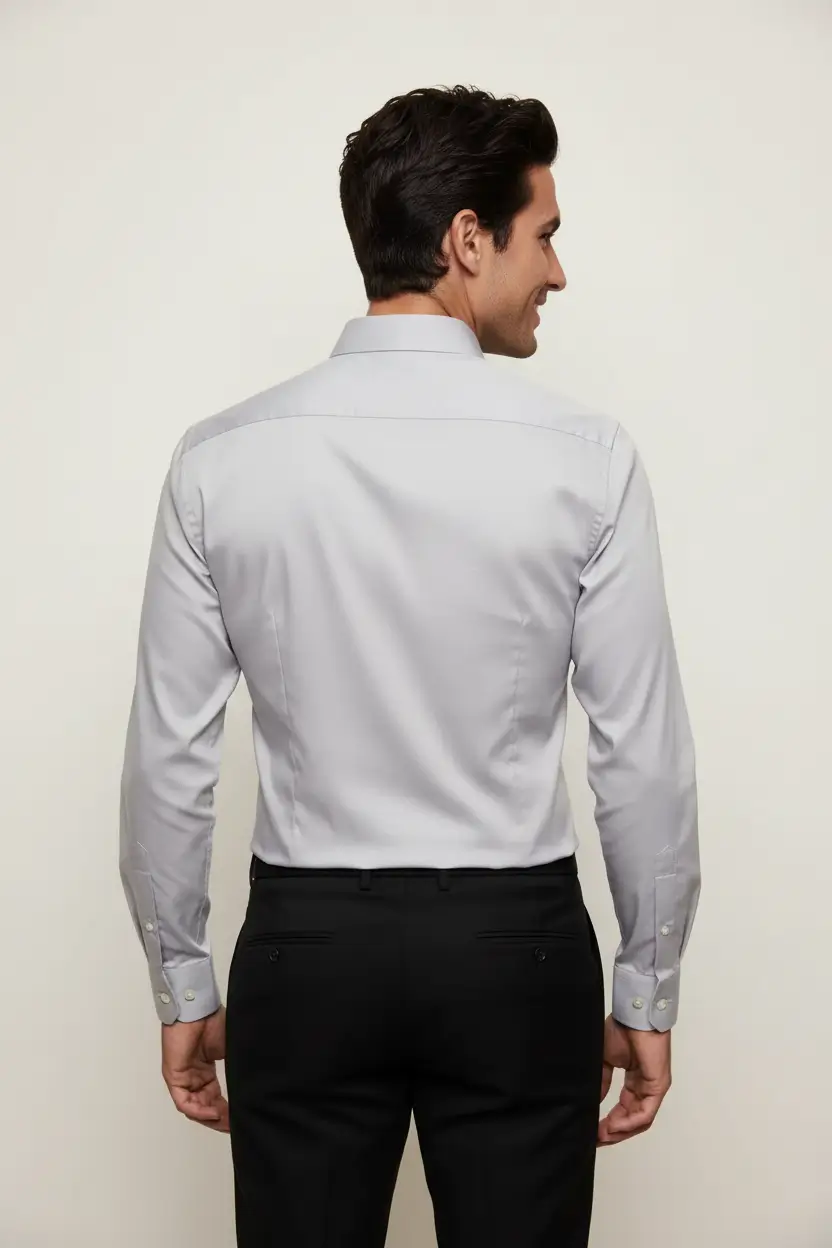 This light gray dress shirt offers a sleek and modern appeal, perfect for those seeking a refined yet relaxed style. The clean lines and smooth fabric create a polished look that effortlessly transitions from day to night.