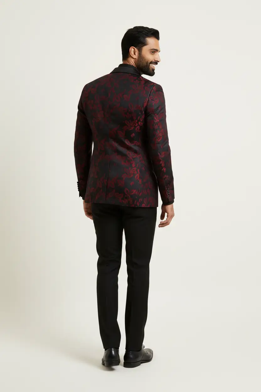Men's Black Shawl Lapel Tuxedo Red Design