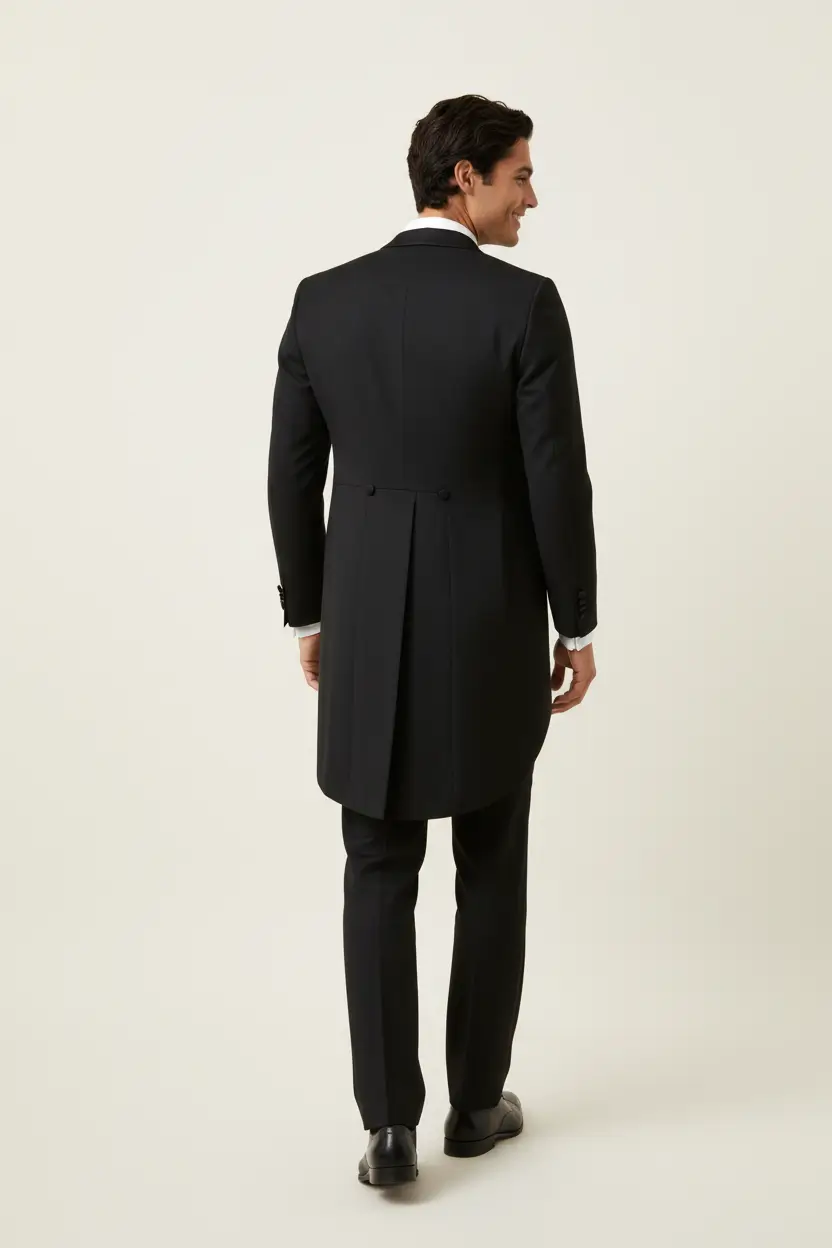 Men's Black Tail Tuxedo Satin Peak Lapel