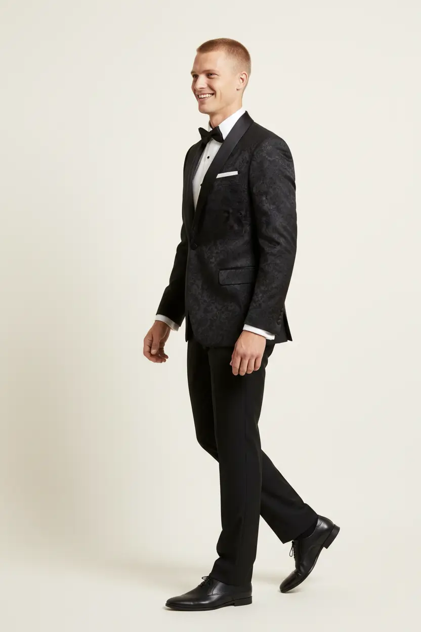 Men's Black Tuxedo Paisley Shawl Lapel 2-Button