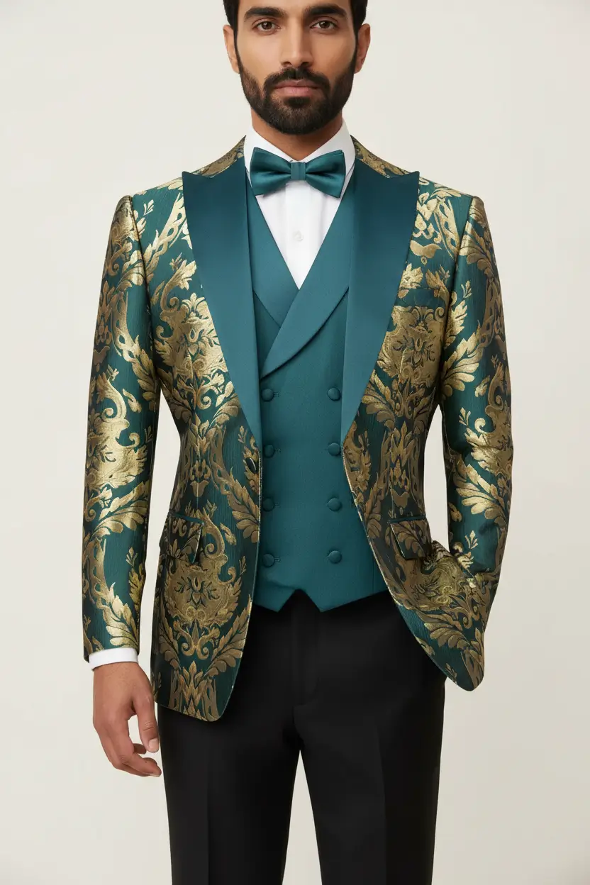 Men's Emerald Tuxedo Luxurious Jacquard