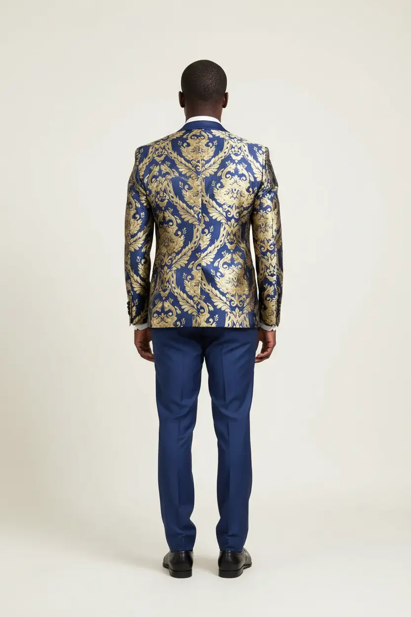 Men's Navy Tuxedo Luxurious Jacquard Pattern