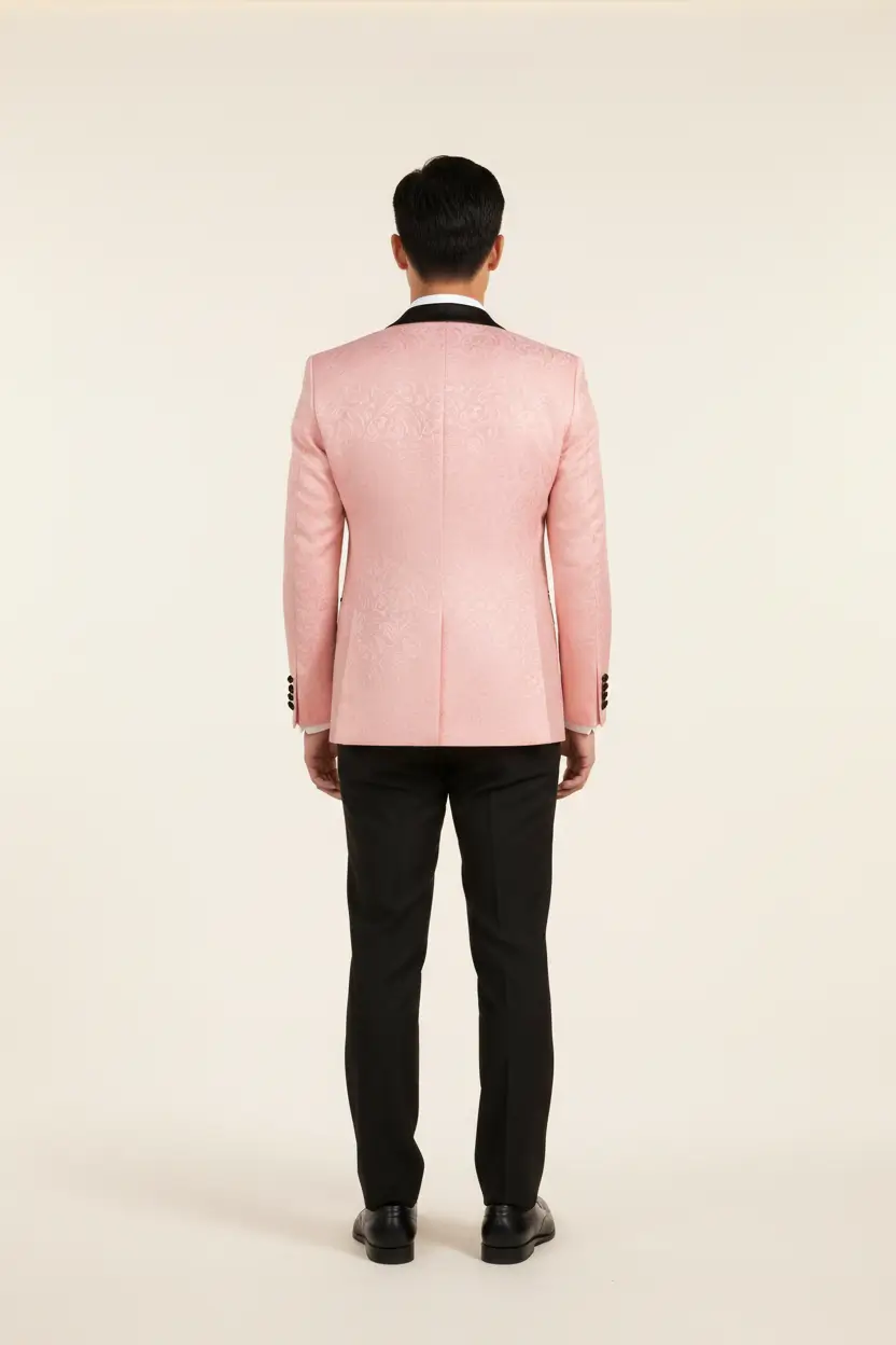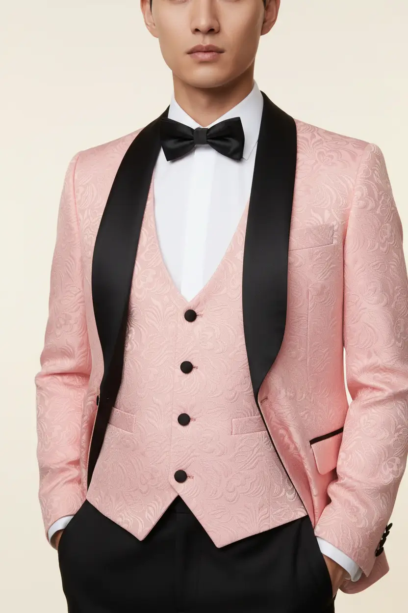 Men's Pink Tuxedo Slim Fit Vested Jacquard