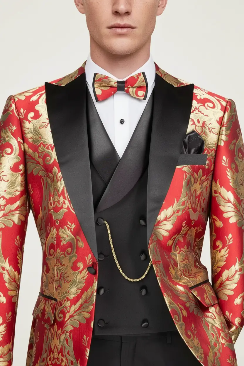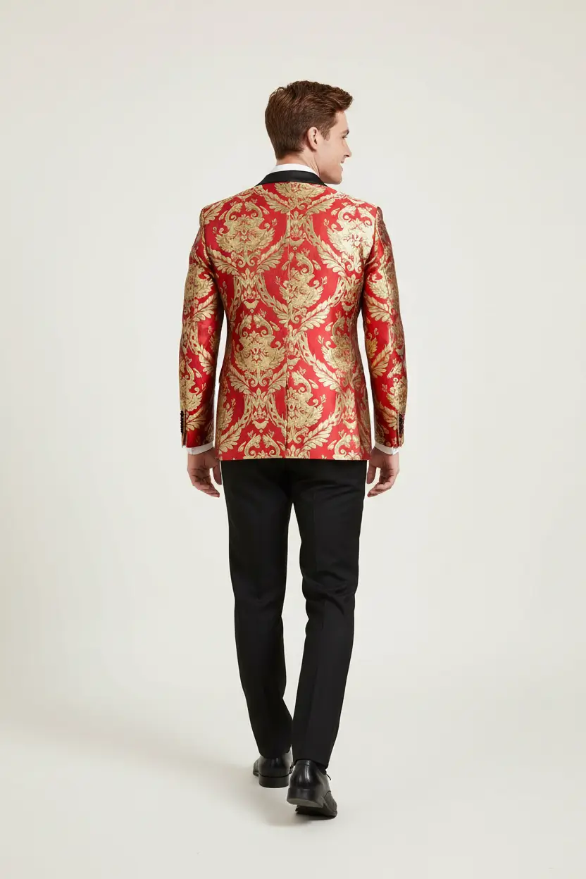 Men's Red Tuxedo Luxurious Jacquard With Gold Accents