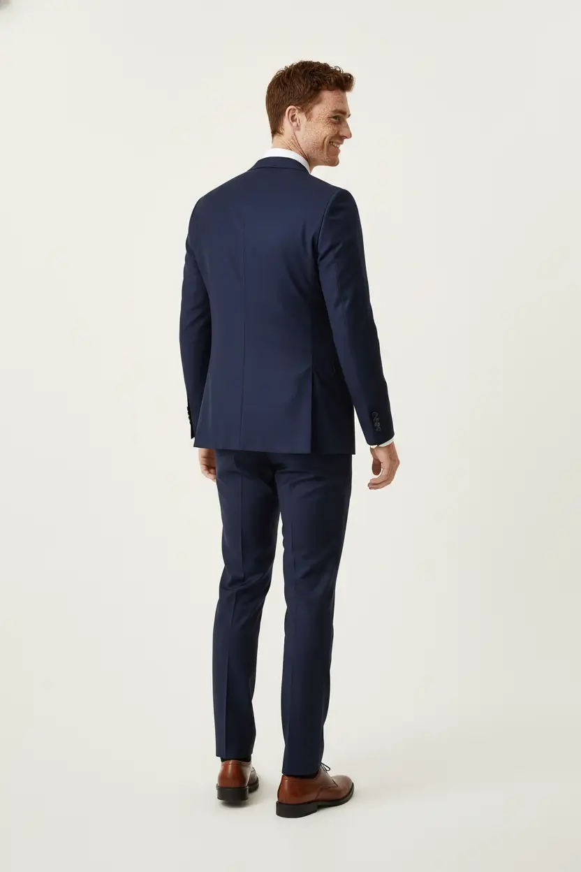 Premium Wool Feel suit with notch lapel and flat front pants.
