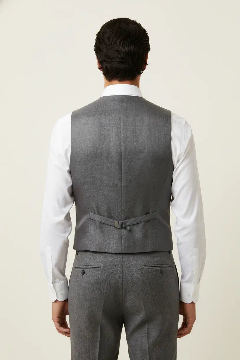 A stylish vest featuring a notch lapel and fully lined design. MATCH WITH 201-4 MEDIUM GRAY SUIT