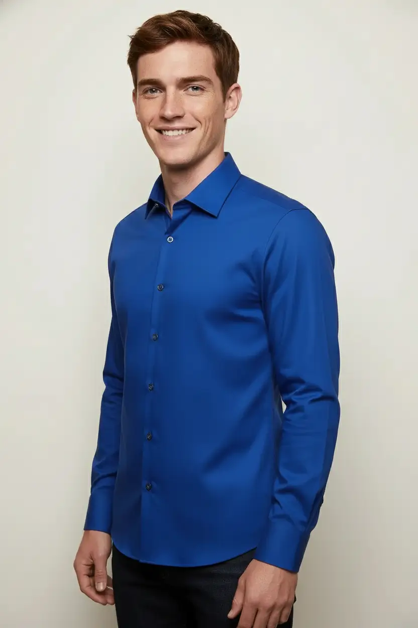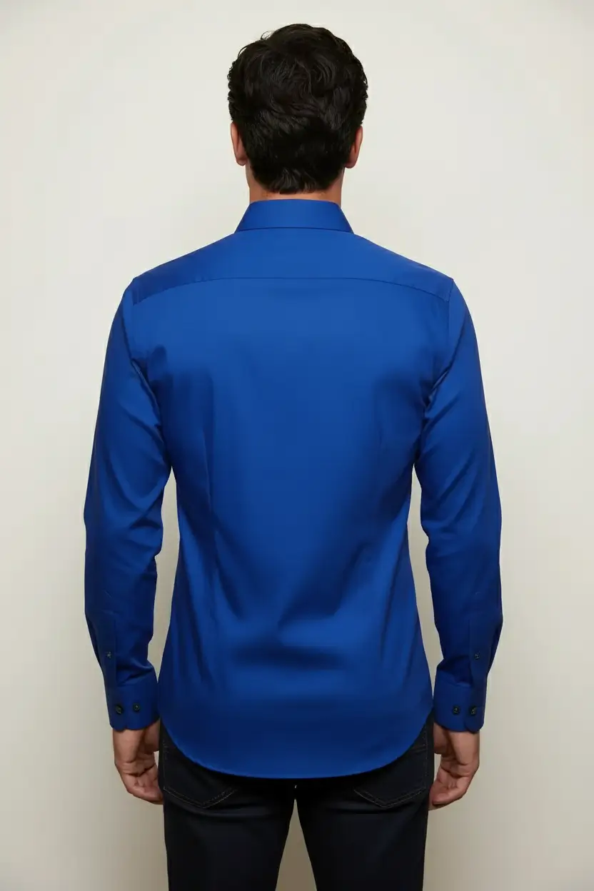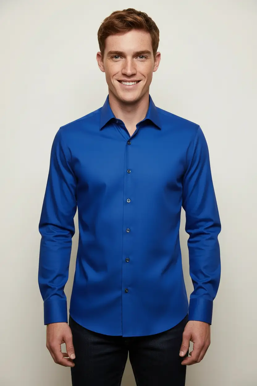 Step into the spotlight with this striking royal blue dress shirt, perfect for those looking to make a statement. Its smooth fabric and modern fit provide a confidence that shines at any event.